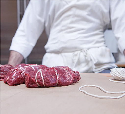 この商品にはどの部位を使うか、どのようにカットすることで肉の旨みを出せるか、脂と赤身の部分をどうカットするかなどを知り尽くしているため、長年の経験と伝統の技がお肉の美味しさを最大限に引き出します。